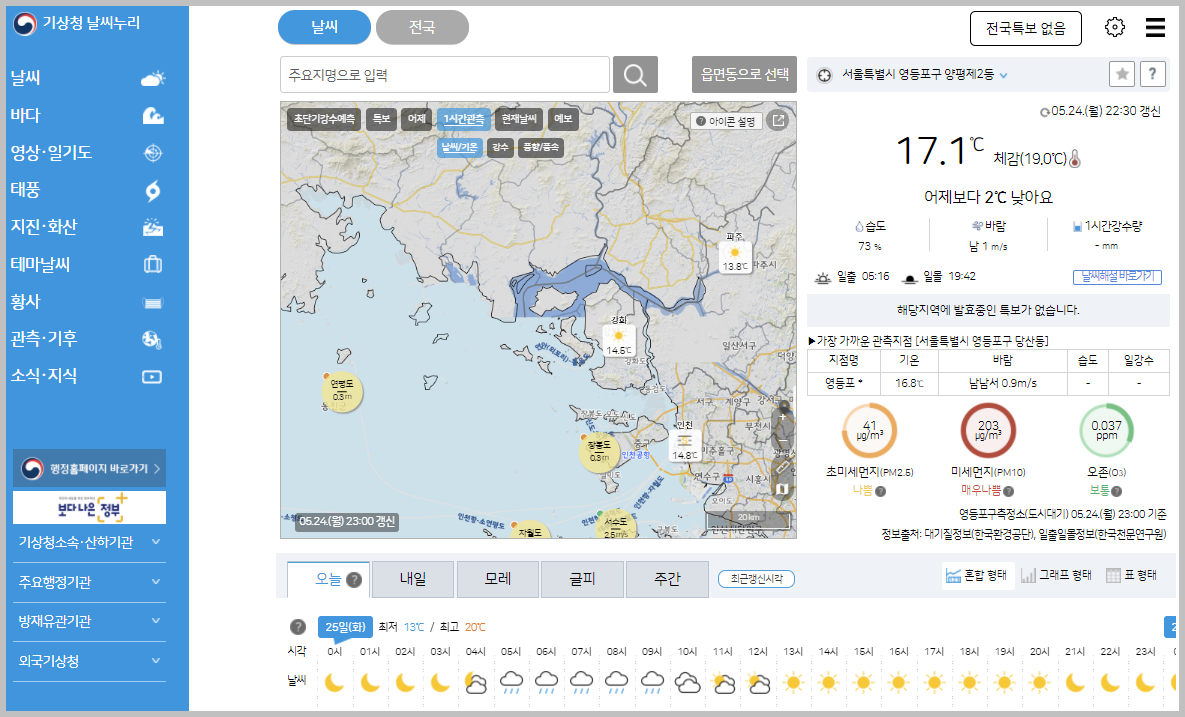 그렇지만 공식적인 방법은 기상청 일기예보를 제공을 하고 있는 기상청 날씨누리 홈페이지에 접속을 하시면 됩니다.