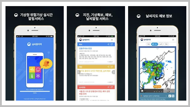 위의 두가지 링크 중에서 자신의 스마트폰에 맞는것을 선택을 하셔서 다운로드 하시면됩니다. 기상청 일기예보 앱의 공식 이름은 기상청 날씨알리미 입니다. 기본적인 날씨 뿐만아니라 지진, 기상특보 같은 정보를 사용자 위치기반으로 제공을 해주는 서비스입니다.