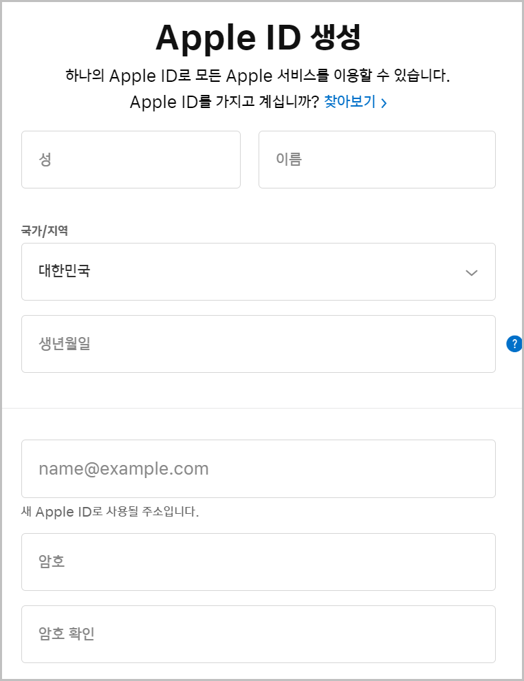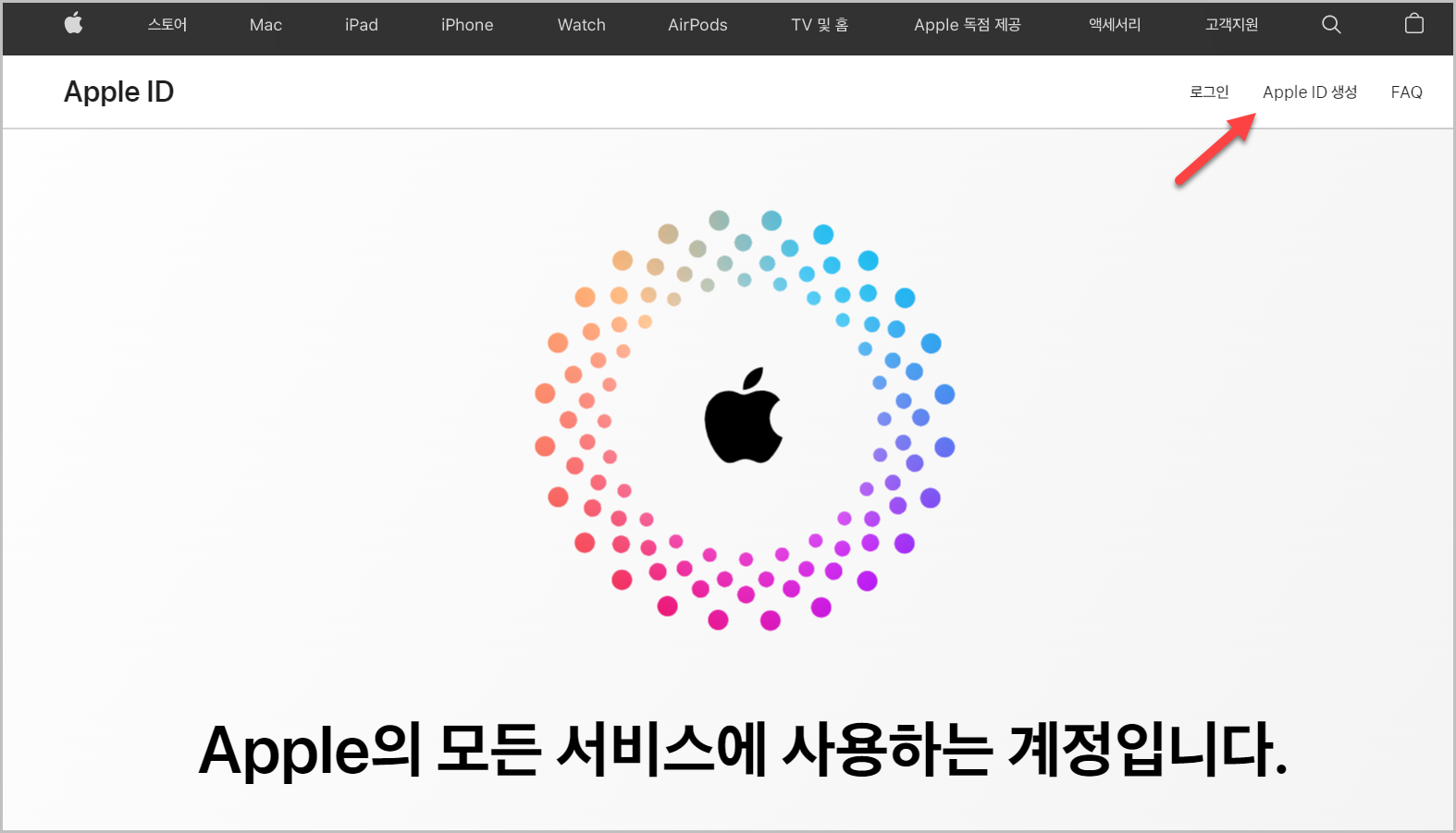 2.오른쪽 위에 있는 “Apple ID생성”를 선택합니다.