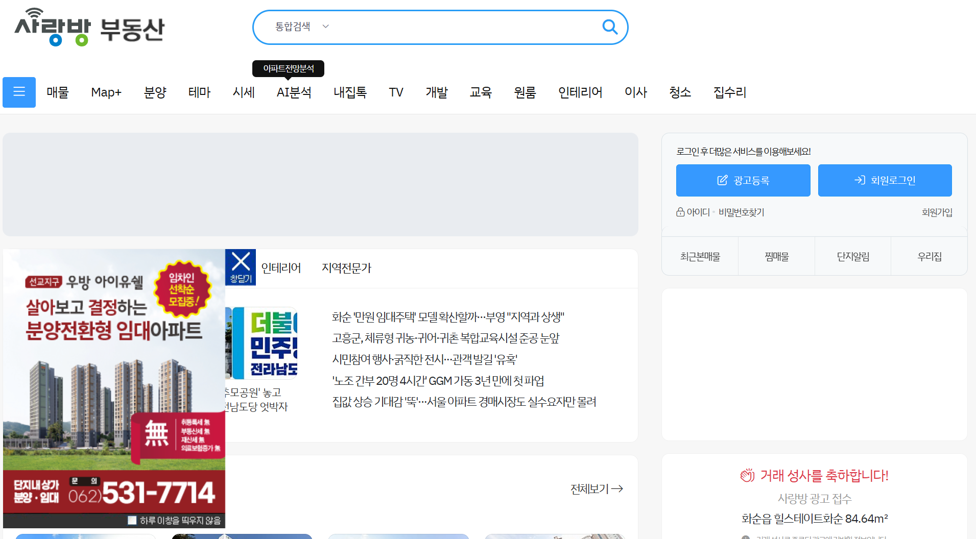 다른 일반적인 부동산 플랫폼이 전국적인 매물을 다룬다면, 사랑방 부동산은 광주와 전남 지역에 특화된 것을 제공합니다. 매물 정보 외에도 다양한 지역 부동산 이슈와 트렌드가 포함되어 있어, 지역민들에게 실질적이고 신뢰할 수 있는 정보를 제공합니다.