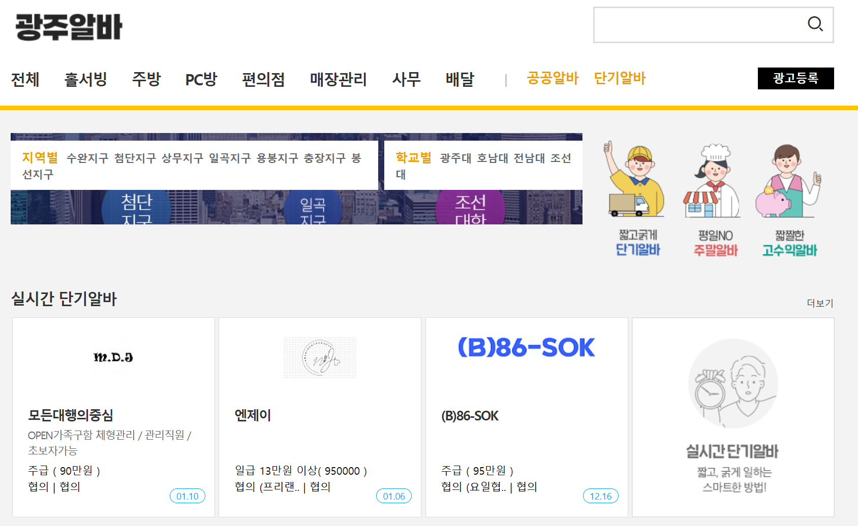 또한, 학생이나 파트타임 근무자를 위한 ‘광주알바’ 사이트도 운영되어 부업이나 단기 아르바이트를 찾는 이들에게 유용한 도구가 됩니다.
