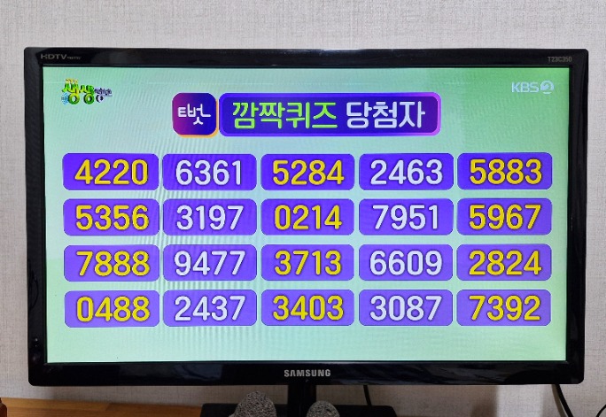 근데 정답 아는것은 어렵지 않아요. 위의 이미지처럼 사람들이 댓글로 열심히 답을 적어 놓기 때문이죠. 그렇기 때문에 사실상 추첨이라고 봐도 무방합니다. 방송 안봐도 맞출수 있습니다. 아마도 얌채들은 알람 맞춰놓고 TV 안보고 정답만 맞추는 사람이 분명히 있을거라 생각됩니다.