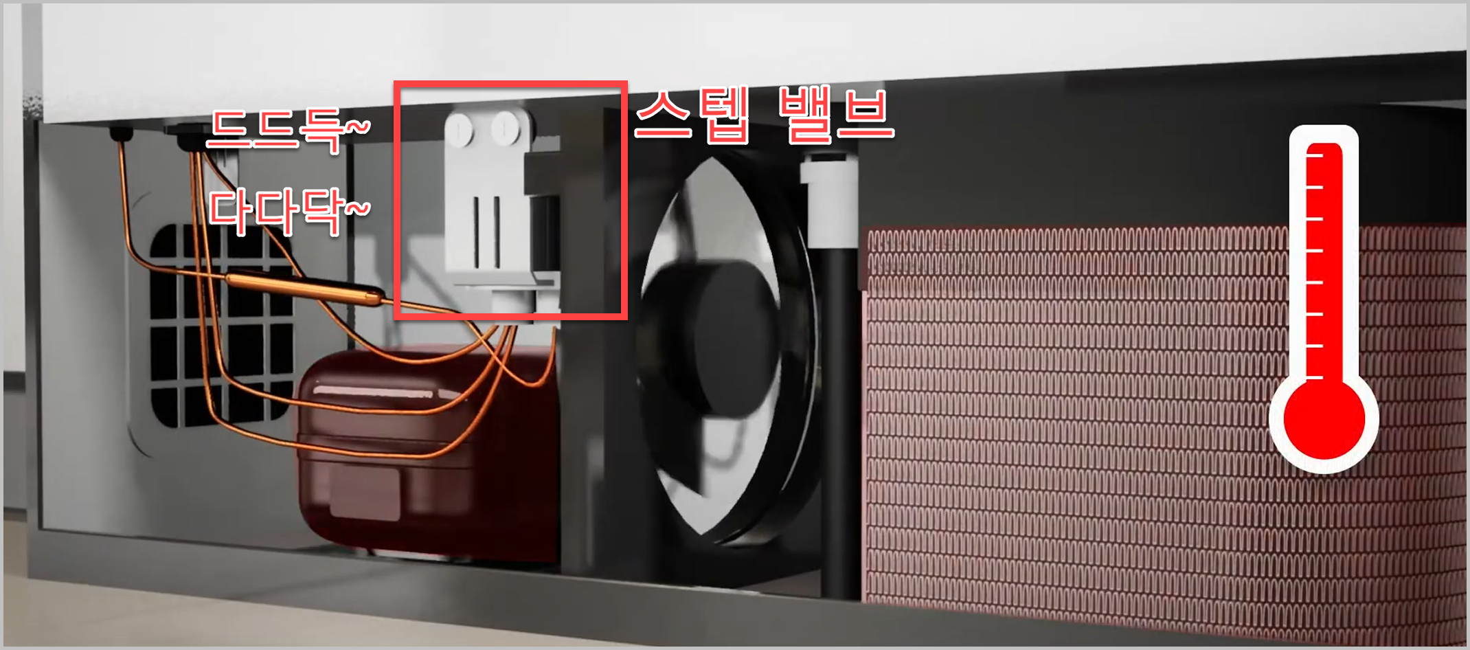 이 부품은 냉기를 나눠주는 과정에서 발생하는 구조적인 발생음입니다. 플리스틱 부품끼리 부딪히거나 회전하는 구조에서 이런 소리가 발생한다고 합니다.