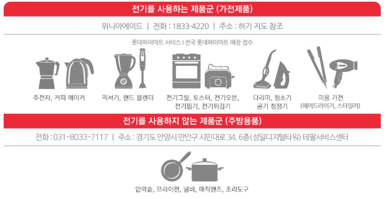 근데 이 회사 제품은 종류에 따라서 고객센터가 다릅니다. 전기를 사용하는것은 위니아 에이드로 가야하고, 아닌경우에는 테팔서비스센터로 가야합니다.