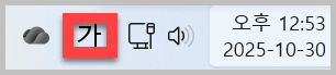 화면 오른쪽 하단의 언어 표시(가/ENG)를 확인하세요. ‘가’가 아닌 ENG로 표시된다면 한국어 입력기가 꺼진 상태입니다.