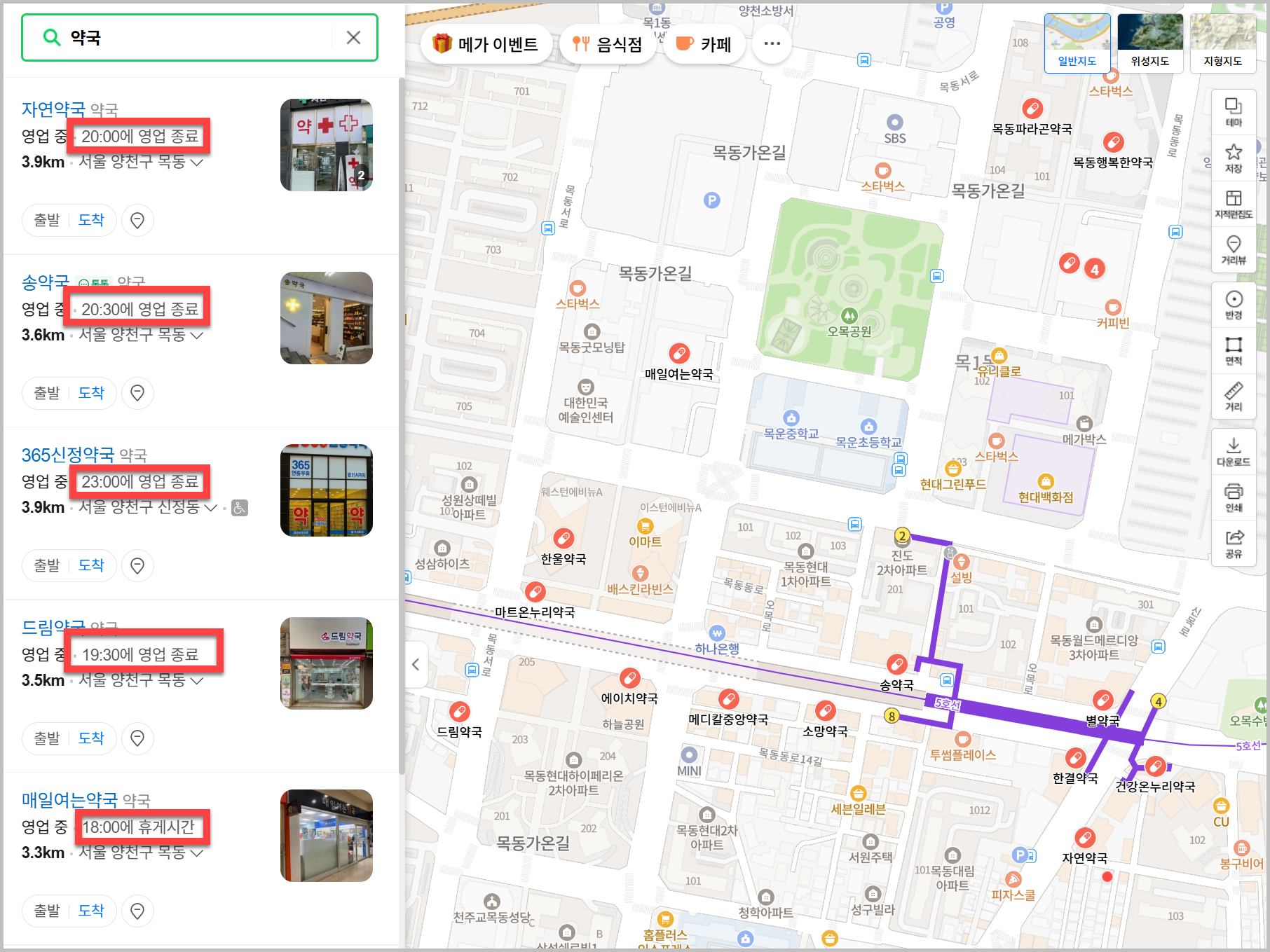평소에는 네이버지도나 카카오맵 같은 지도 앱만으로도 충분히 도움을 받을 수 있습니다. 검색창에 심야 약국이나 24시 약국이라고 입력하면 현재 영업 중인 곳이 표시되어 한눈에 확인할 수 있습니다. 특히 지금 영업 중인지 바로 알 수 있어서 헛걸음을 줄일 수 있습니다. 여기에 굿닥이나 똑닥 같은 의료 관련 앱을 함께 사용하면 전화 연결까지 바로 가능해 더 편리합니다.