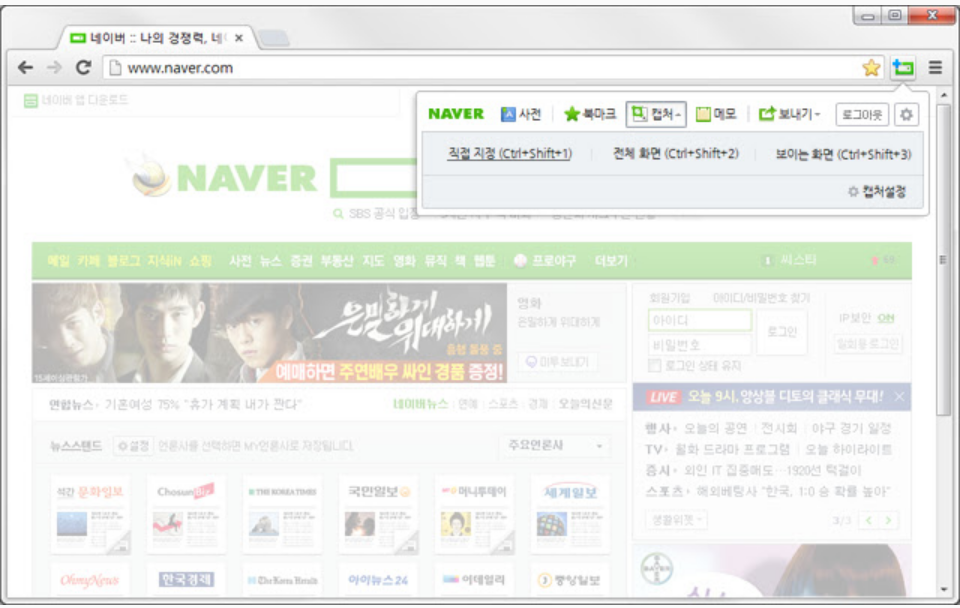 - 네이버 툴바의 기능을 발전 시켜 포함함