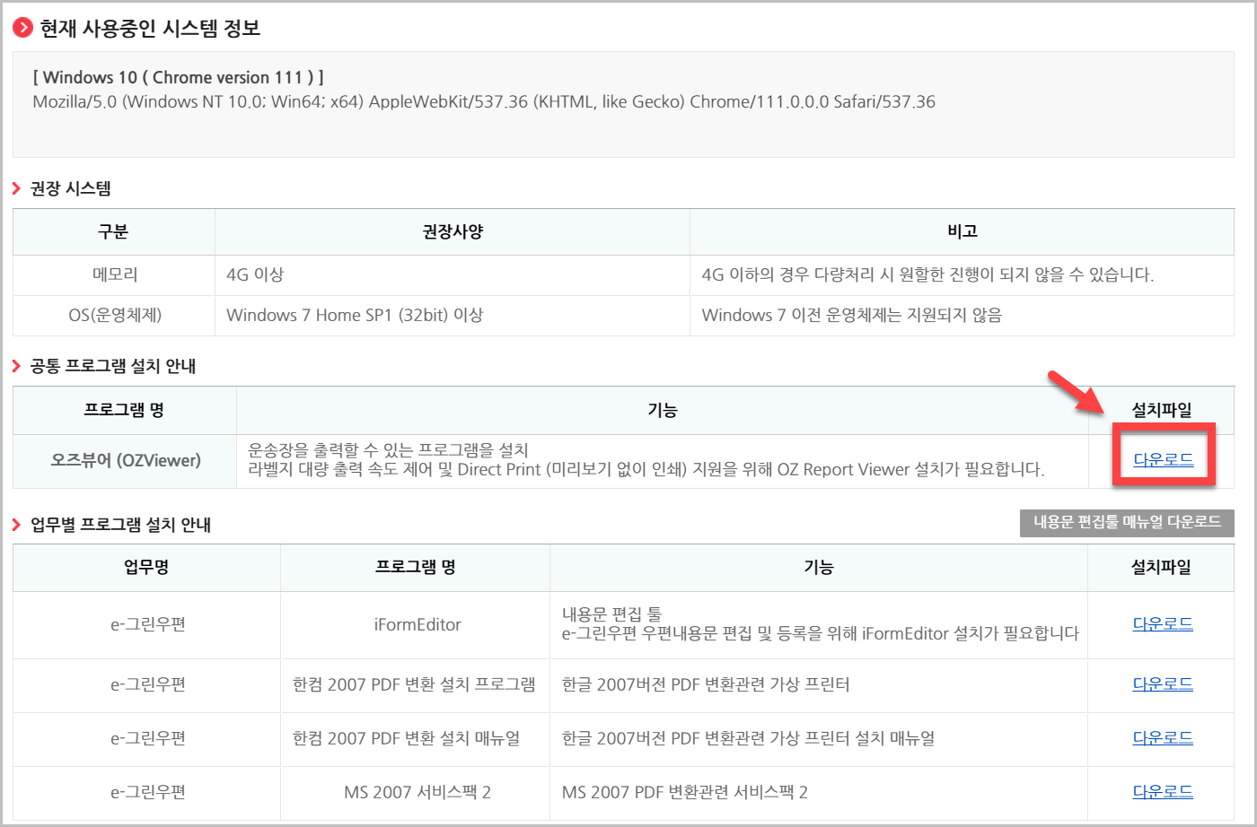 그중에서 중간에서 오즈뷰어라는 것을 클릭해서 다운로드 하시면 됩니다. 설치 과정은 그리 어렵지 않기 때문에 별도로 설명을 하지 않겠습니다.