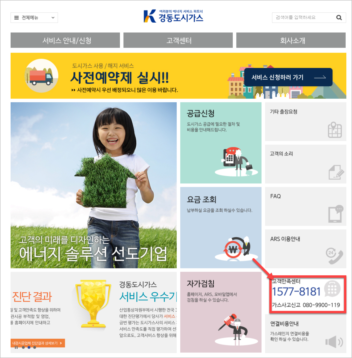 울산도시가스 고객센터 전화번호 : 1577-8181