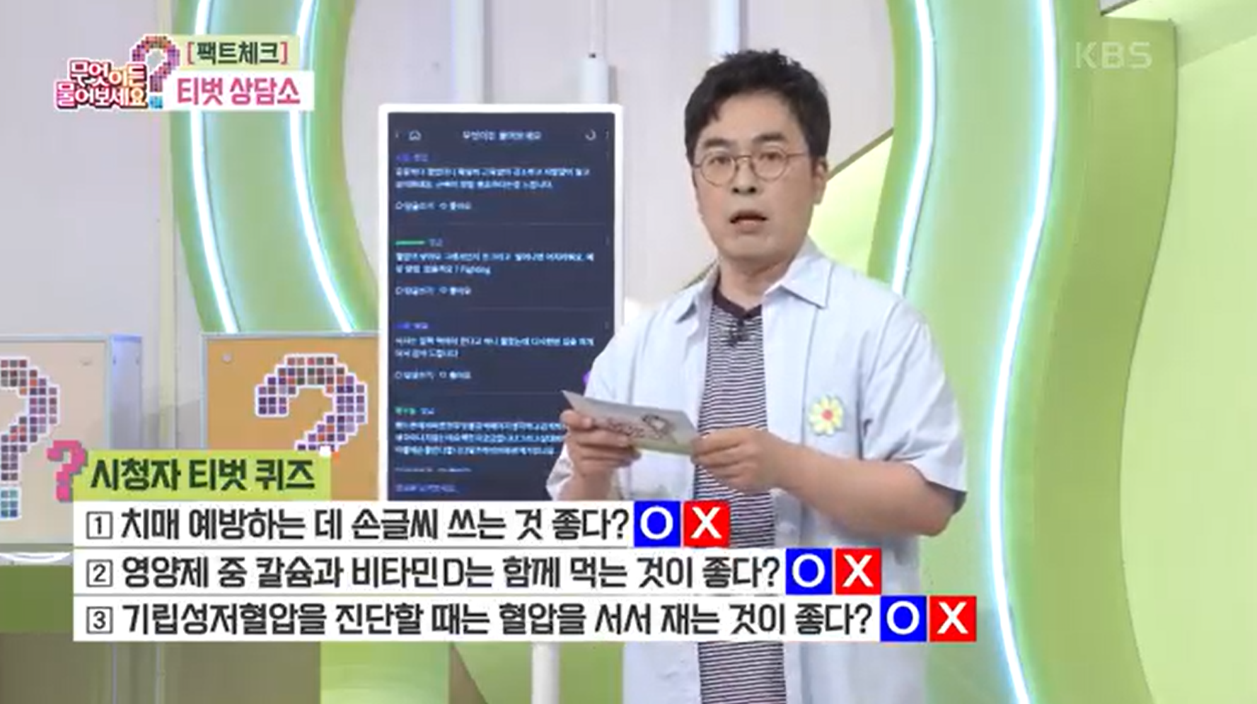 무엇이든 물어보세요 티벗 퀴즈는 이런식으로 나옵니다. 아침마당은 ARS로 맞추는 시스템이 있었는데 이건 티벗으로만 참여가 가능합니다.