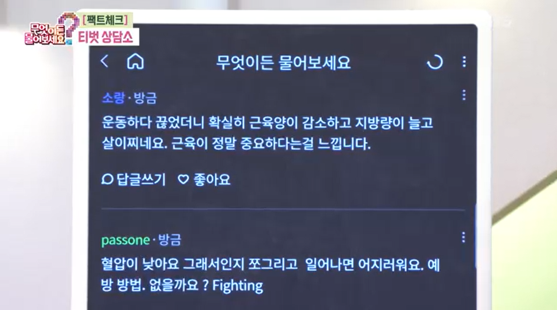 제 나이 많큼이나 오래된 방송도 있더라구요. 바로 무엇이든 물어보세요 라는 방송입니다. 오랜시간동안 함께 해온 프로그램인데도 불구하고 본방은 몇번 본적이 없었던 이유는 방송시간 때문인것 같습니다. 평일 아침 8시부터 9시20분까지 하는 이 프로그램은 저같은 사람이 보기에는 너무 이른시간이지요.