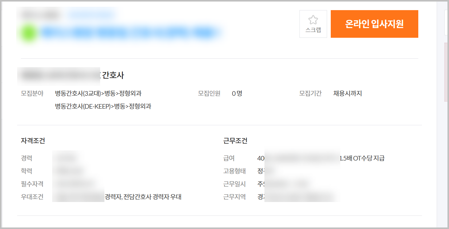 각 공고에는 병원명, 모집내용, 마감일 등 주요 정보가 정리되어 있어 한눈에 확인할 수 있습니다. 관심 있는 공고를 클릭하면 자격조건과 지원 방법 등 구체적인 정보도 상세히 확인하실 수 있습니다. 데이터베이스가 잘 꾸려져 있는것을 알수 있습니다.