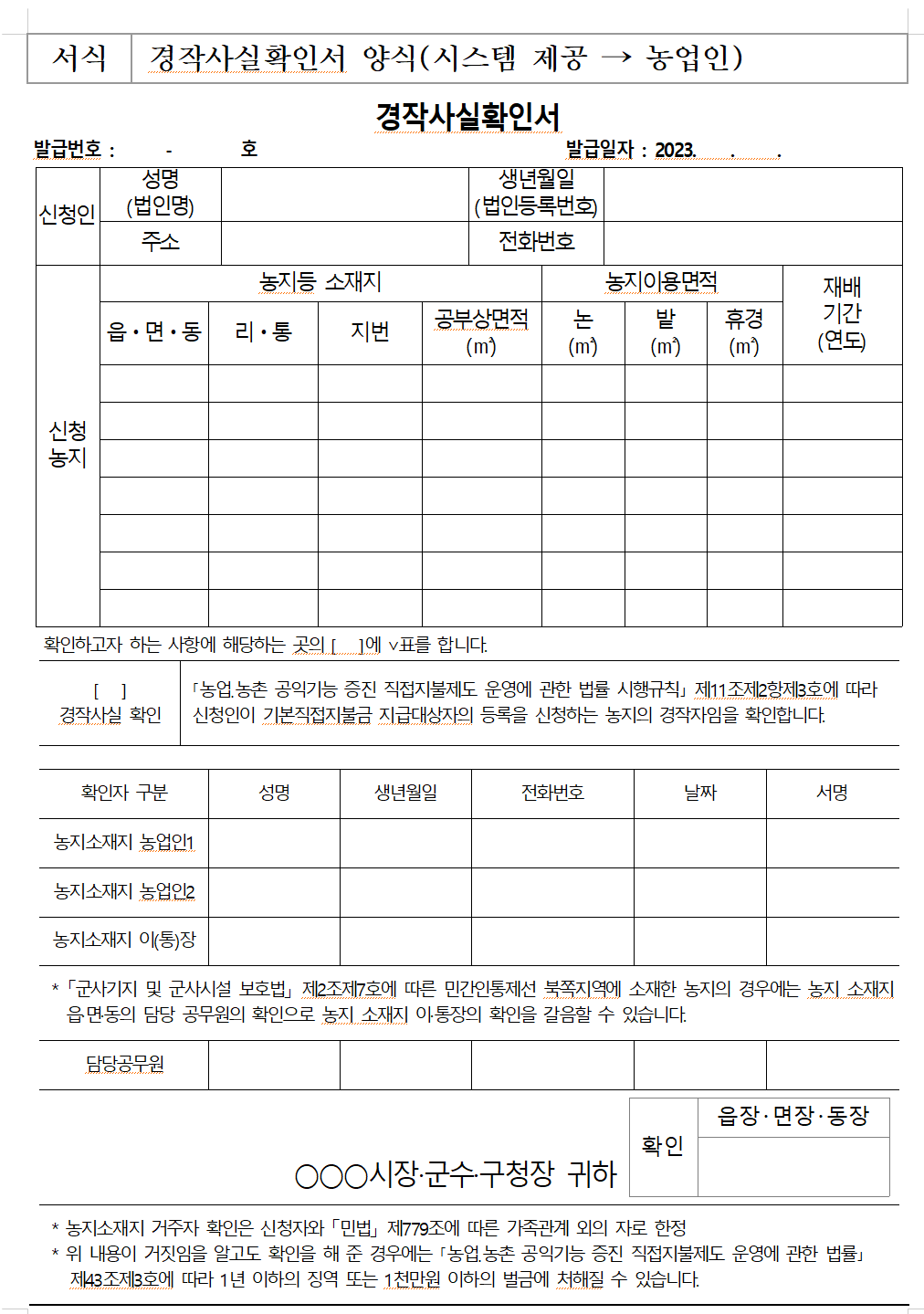 경작사실확인서 발급 방법