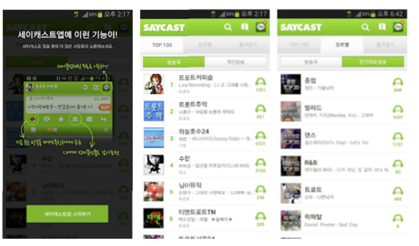 위 링크 중에서 자신의 스마트폰에 맞는 것을 선택을 하시면 편리하게 세이클럽 음악방송을 들을수 있는 세이캐스트를 다운로드 할 수 있습니다.