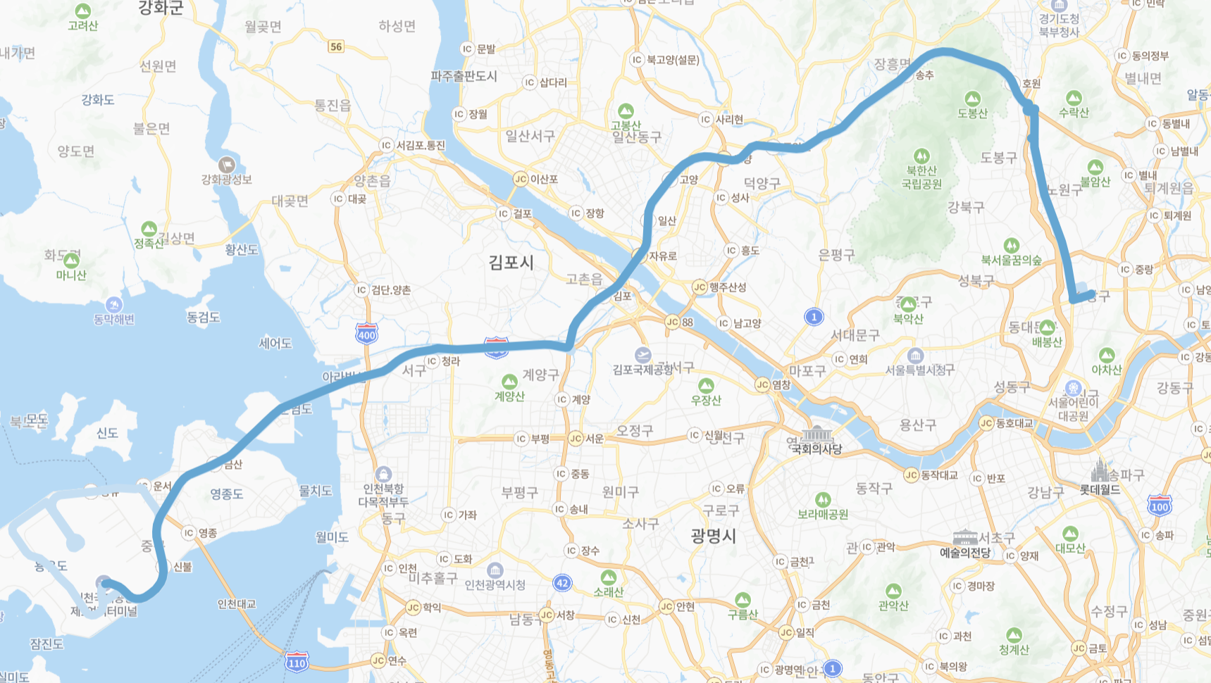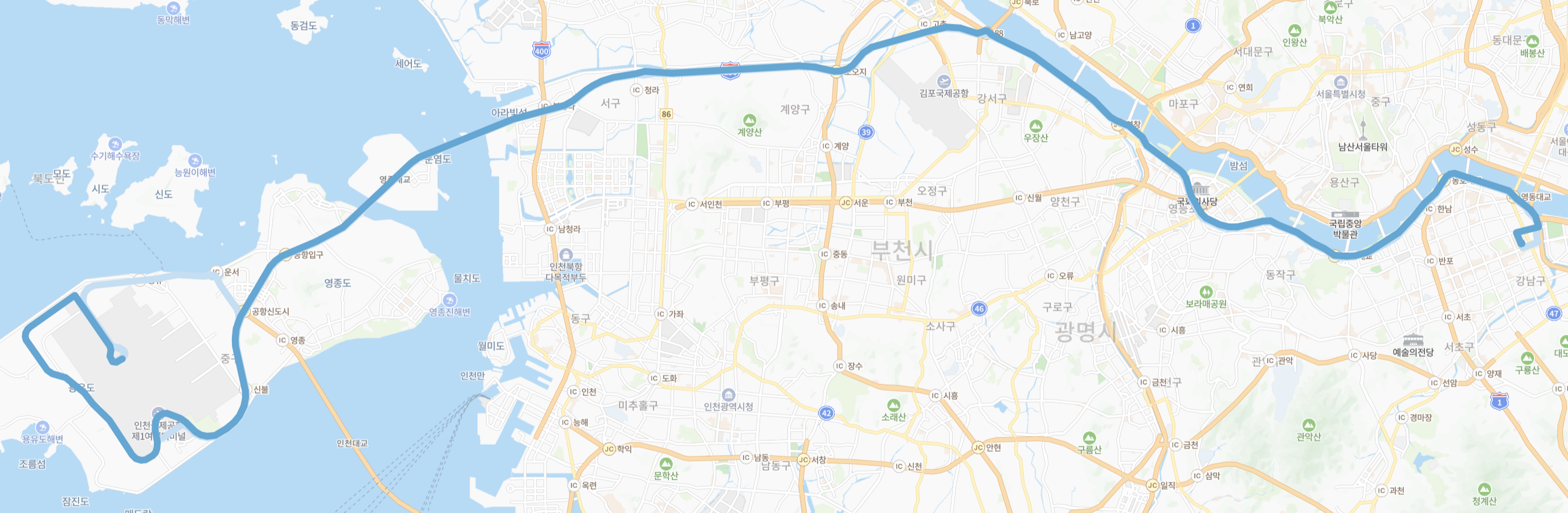 이것도 굉장히 빠르게 이동합니다. 개포동에서 인천까지 빠르게 이동하는 노선입니다. 근처 몇군데만 돌고 막바로 도심고속도로 타고 이동을 하지요.