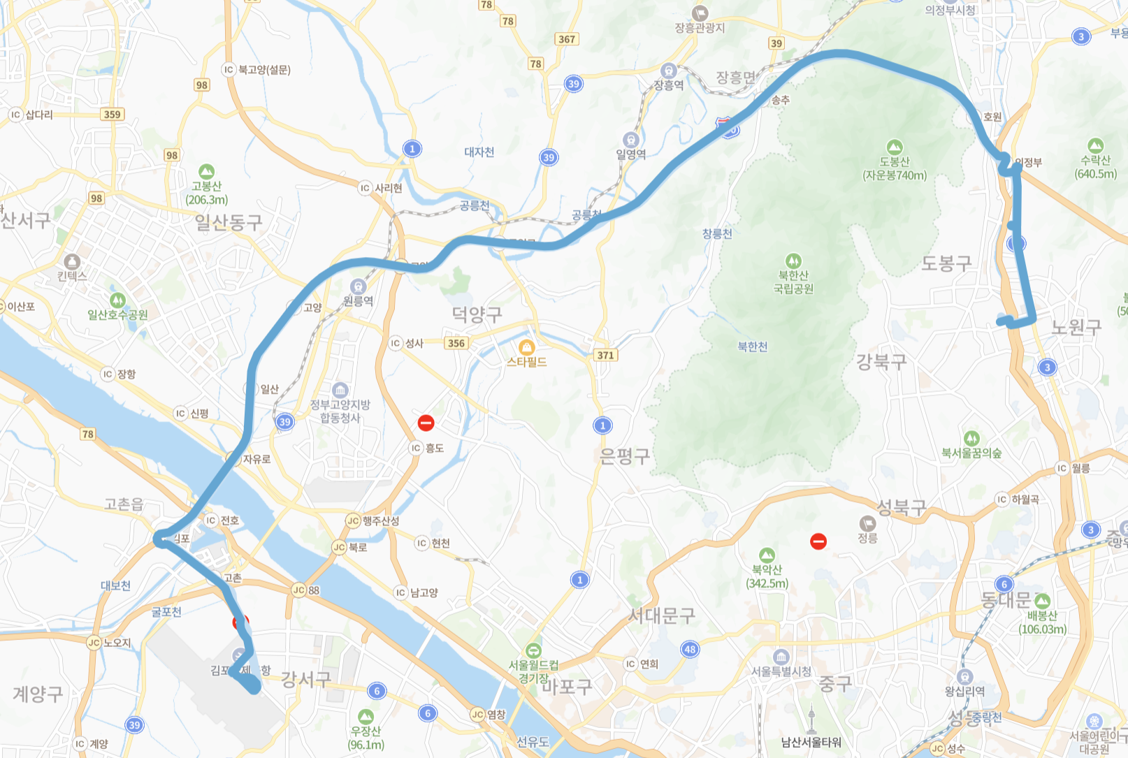 창동, 노원에서 김포공항으로 가는 버스입니다. 배차간격은 꽤나 깁니다 50분 정도이기 때문에 꼭 확인을 하고 가시길 권해드립니다.