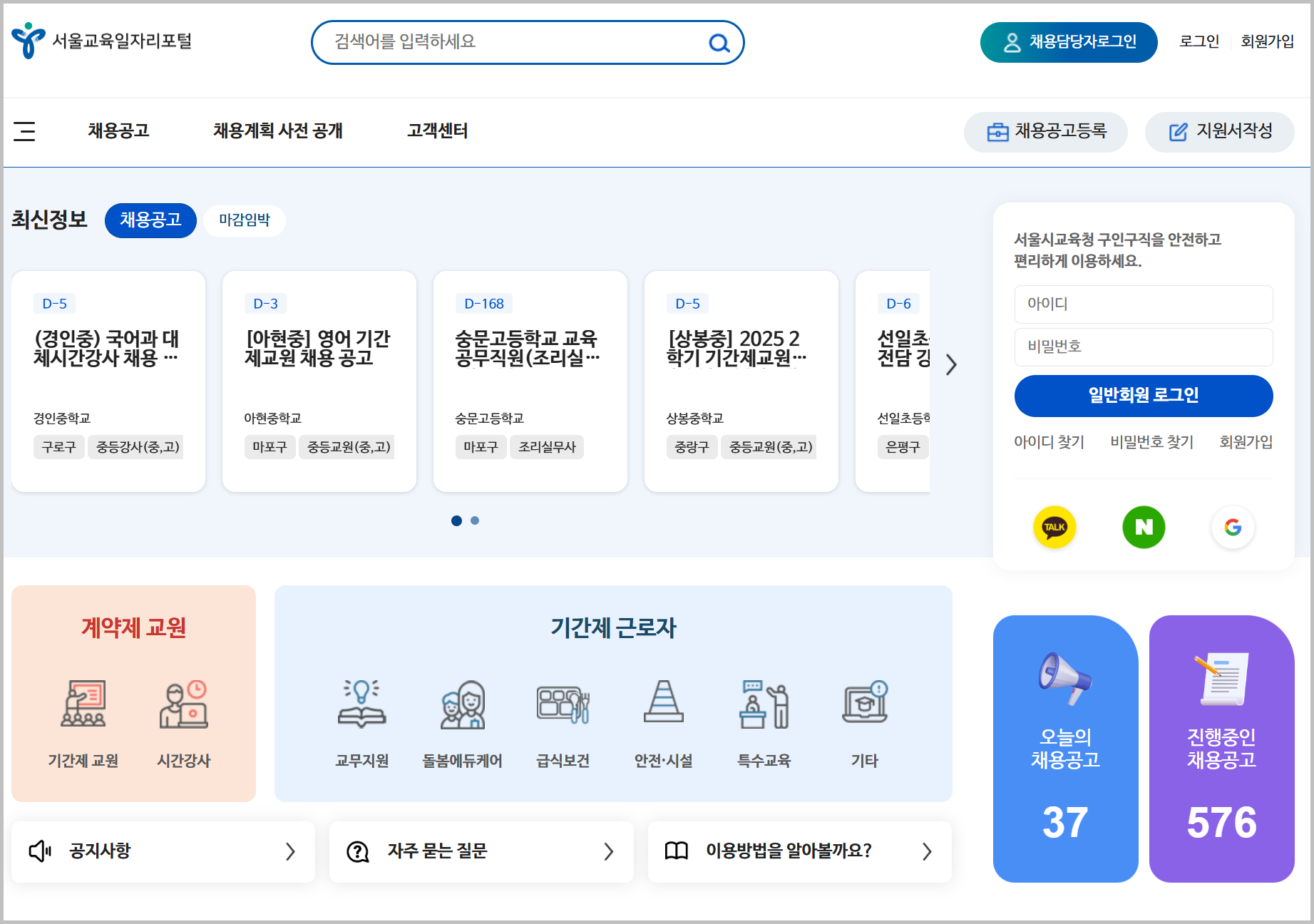 - 정규직은 물론이고 계약직, 돌봄, 급식, 교무지원, 사무보조까지 다양합니다.