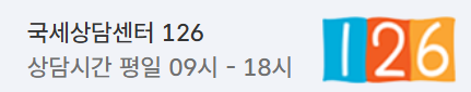 누리집 들어가시면 위와 같이 떡하니 나와 있습니다. 국세 상담센터는 126 입니다. 번호 너무 좋습니다. 국가에 세금내려고 하는거다보니 친절하기 까지합니다. 하지만 평일 9시부터 18시까지만 이용이 가능합니다.