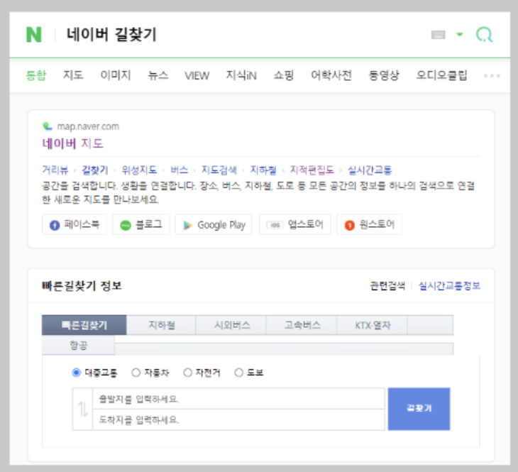 그냥 간단하게 위 링크를 클릭을 함으로서 네이버 길찾기 서비스를 이용할 수 있습니다.