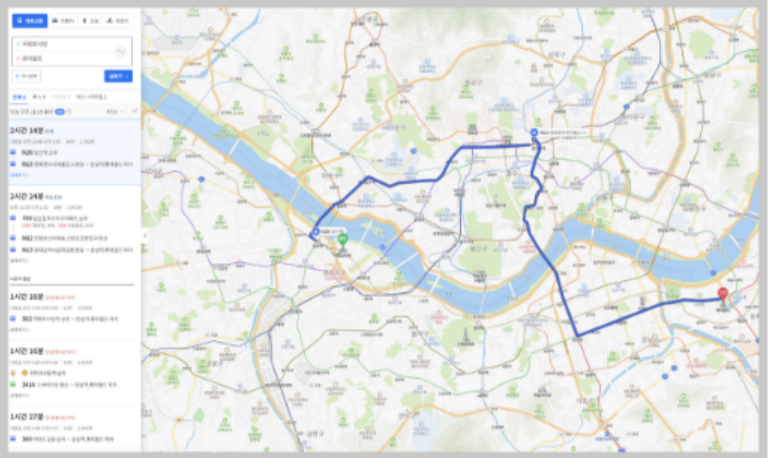 지도와 관련된 서비스를 공급하고 있는 서비스는 길찾기 서비스를 항상 가지고 있습니다. 단지 자동차로 이동하는 길찾기 서비스 뿐만아니라, 지하철, 버스를 이용한 대중교통 서비스도 하고 있습니다. 하지만 신뢰도의 차이는 분명히 있습니다. 구글 같은경우에는 지도업데이트가 잘 되지 않아서 신뢰할수 없지만 반면에 카카오맵이나 네이버 지도는 업데이트가 빠르게 되어서 좋은 결과를 보여줍니다.