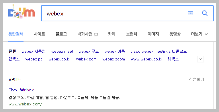 Webex Meeting의 홈페이지는 네이버 다음에서 webex 라고 검색만해도 첫화면에 검색결과가 나오게 됩니다. Cisco Webex를 클릭을 하시면 홈페이지에 들어가시게 됩니다.