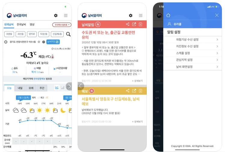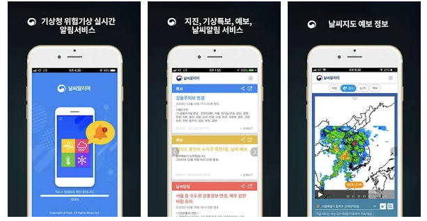 기상청은 과거에는 날씨어플을 자체적으로 제작을 하지 않았습니다. 하지만 최근에는 부족하지만(또는 불편하지만) 기상청 날씨알리미 라는 어플을 제작하여 배포하고 있습니다.
