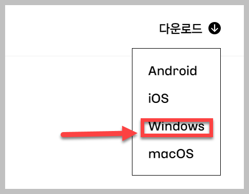 우측 상단에 보면 '다운로드'라고 되어 있습니다. 이것을 클릭을하면 작은 메뉴가 나오게 됩니다.