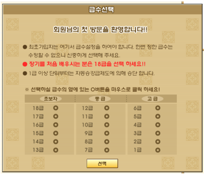 위와 같은 화면이 나오면 본인의 장기 등급을 설정을 하면 됩니다.