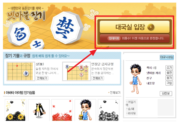 이후에 다시 '대국실입장'을 클릭을해서 넷마블 장기설치를 진행을 해보도록 하겠습니다.